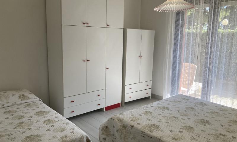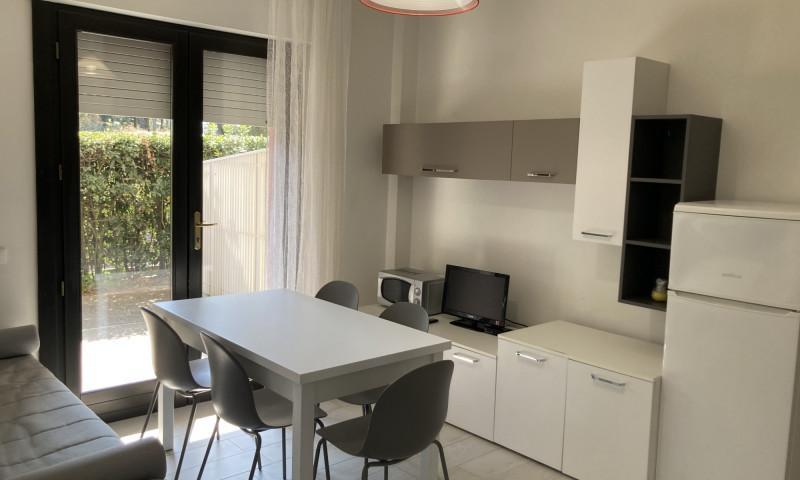 Tipo C: l'appartamento si trova al piano giardino e si compone di soggiorno-pranzo con divano letto, angolo cottura, 1 camera con letto matrimoniale e letto singolo, 1 camera con letto a castello, 1 bagno con doccia, ampio scoperto recintato attrezzato. Per 5-6 persone. TV - forno microonde - aria condizionata - lavatrice.