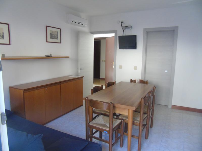 Appartamento composto da due camere con due letti, soggiorno con divano letto singolo, cucina, bagno con box doccia, terrazzo, giardino, posto auto, 1^ piano, tv - sat, lavatrice in comune, Wi fi gratuito, materiale spiaggia compreso nel prezzo, aria condizionata (extra il consumo).