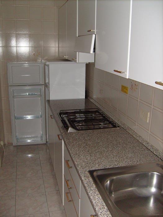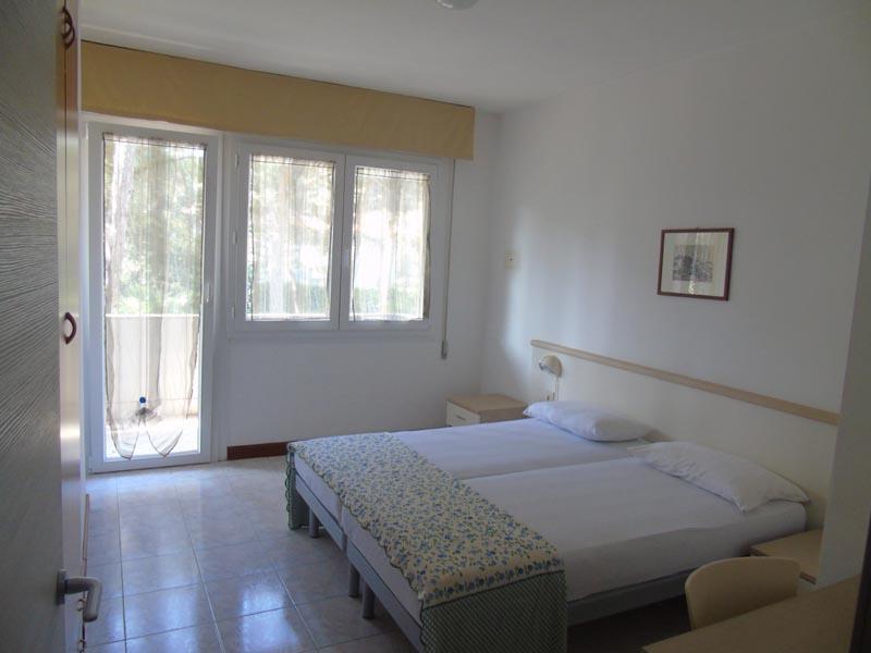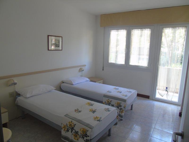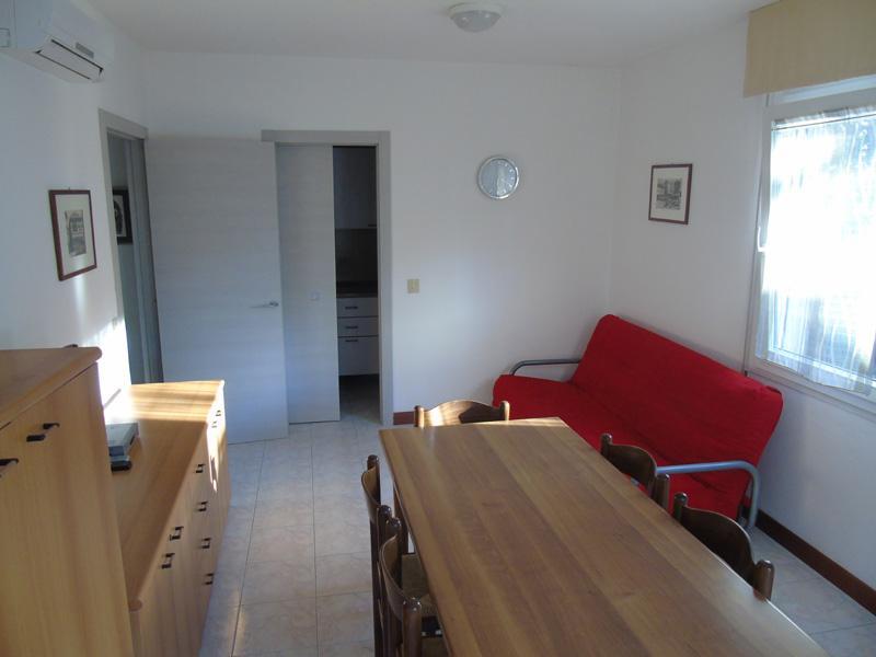 Appartamento con due camere con due letti, soggiorno con divano letto, bagno con box doccia, terrazzo, giardino, posto auto, primo piano, Wifi gratuito, materiale spiaggia compreso nel prezzo, aria condizionata (extra il consumo).