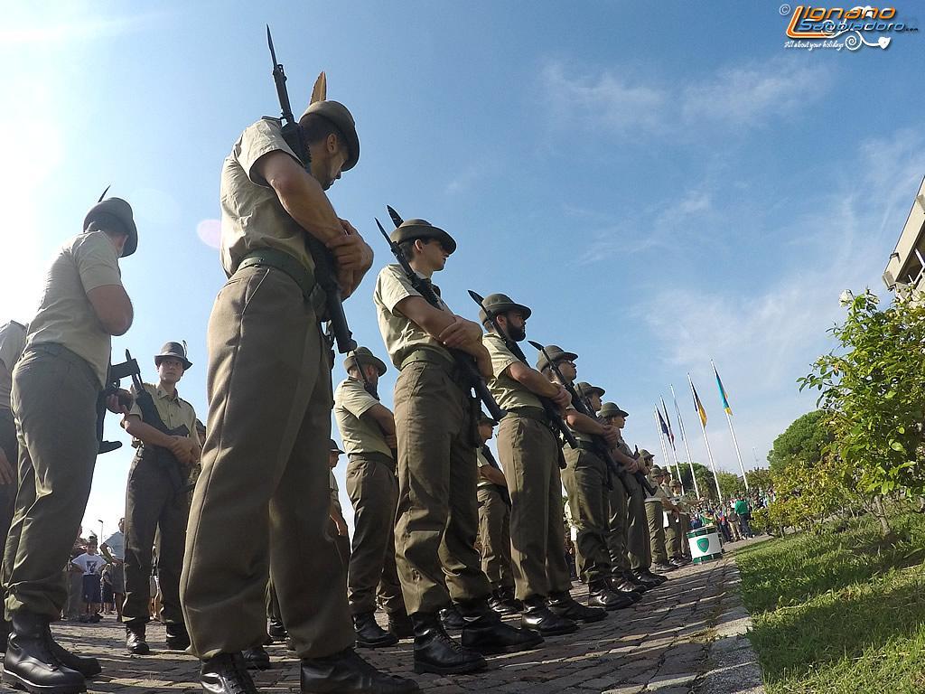 La sfilata degli artiglieri lungo le vie del centro Lignano Sabbiadoro è stato il momento culminante e conclusivo del Raduno nazionale degli ex del Terzo Artiglieria da Montagna della brigata alpina Julia. Accompagnati dalle note del “Trentatrè” della fanfara della Julia, quasi cinquemila penne nere hanno ricevuto il plauso di familiari e amici confluiti nel centro balneare per festeggiare i cento anni della costituzione del glorioso reparto e i 50 anni del Gruppo Ana lignanese (1965 al 2015). A sottolineare il significato storico dell’evento è intervenuto il sindaco di Lignano, Luca Fanotto, che ha ringraziato gli ospiti provenienti da tutte le regioni del Nord Italia per la partecipazione e i suoi concittadini per la calorosa accoglienza. Per riportare alla memoria le testimonianze di memorabili imprese, hanno sfilato anche alcuni muli l’unico “mezzo di trasporto” sui sentieri e mulattiere in alta quota. Sono intervenuti anche il presidente della Sezione Ana di Udine, Dante Soravito De Franceschi, il comandante del Terzo Ariglieria, colonnello, Enzo Ceruzzi, e il presidente della Provincia, Pietro Fontanini.