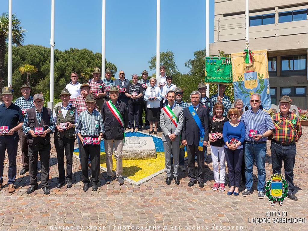 Ecco quindi che la sezione del Gruppo Alpini Lignano, in collaborazione con il Comune, ha subito preso contatti con altre sezioni per organizzare il loco una grande manifestazione commemorativa tenutasi domenica 22 maggio sul piazzale Divisone Julia di Sabbiadoro. Erano presenti per l’occasione varie autorità, religiose, civili, militari e associazioni d’Arma. La nostra Regione su richiesta di alcuni parenti dei Caduti, i cui nomi sono compresi nelle pagine dell’Albo d’Oro (sono annoverati 529.025 Caduti), ha coniato diverse medaglie ricordo che portano incisa ciascuna il nome del Combattente caduto. Gli studenti della Scuola Media di Lignano hanno dato lettura di 90 nominativi ai quali è stata consegnata la Medaglia ricordo, ovviamente a ritirarla non potevano esserci che i discendenti, nipoti e pro - nipoti. Si è trattato di una celebrazione commemorativa che ha avuto momenti davvero toccanti. Presenti le rappresentanze degli Alpini di Bergamo, Barge (Cn) e altre località, con al seguito signore e accompagnatori. La commozione è aumentata con la lettura della “Preghiera ai Caduti” e con la successiva consegna delle Medaglie ricordo: tra queste una per il Capitano saluzzese Mario Musso, eroe del conflitto sui monti della Carnia, già insignito di Medaglia d’Oro al Valor Militare, altre 17 per altrettanti Caduti di Barge e 6 per i Caduti di Paesana, tutte custodite in un cofanetto di pregiata fattura. Al termine della consegna l’Alpino Ottavio Coero Borga ha recitato con rara sensibilità espressiva la preghiera “La Madòna dij soldà” nella parlata piemontese, seguita dalla lettura in lingua italiana. Ancora l’Alpino Tonino Marcuzzi ha letto il brano in friulano “Il cur d’Aur dal mè Friul”, tradotto subito dopo in italiano (“Il cuore d’oro del mio Friuli”) da un altro Alpino del Gruppo di Lignano. La consegna delle Medaglie è stata preceduta dagli interventi di varie autorità, in primis dal sindaco di Lignano Luca Fanotto, l’assessore provinciale Carlo Teghil, il consigliere delegato di Barge e infine dal capogruppo Alpini di Lignano Ermanno Benvenuto.