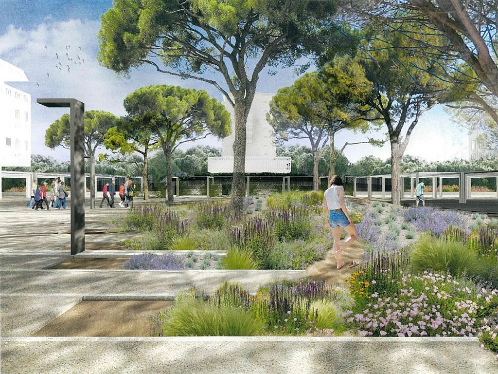 La riqualificazione della piazza dal punto di vista ambientale è un ulteriore elemento fondamentale del progetto, con essenze vegetali che saranno, sia esteticamente sia funzionalmente, integrate e diversificate, in grado di creare barriere filtro nei confronti degli inquinanti atmosferici e sonori. Si prediligerà l’impiego di specie arboree e arbustive autoctone.